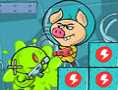Das Schwein hat einen Raumanzung und eine Laserkanone. Du musst die Münzen im Raumschiff einsammeln. Außerdem hast Du die Aufgabe, mit der Kanone die Aliens zu erledigen. Nutze Deinen Gravitationssstrahl und verschiebe Dinge, um höher im Raumschiff zu gelangen.