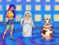 Die Personen stehen zuerst alle drei auf der Bühne. Du musst Dir merken, wo das Mädchen steht. Dann werden die Personen verdeckt und vermischt. Danach musst Du Dich entscheiden. Hast Du gesehen, wo sie jetzt ist? Entscheidest du Dich falsch, knutscht Dich die Kuh.